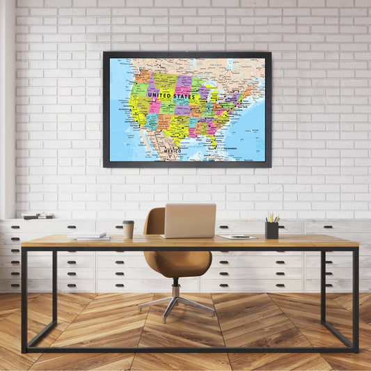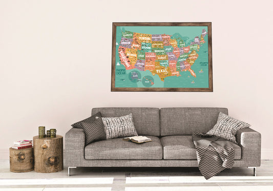 Detailed Pushpin USA Map | 36" x 24" or 24" x 18"