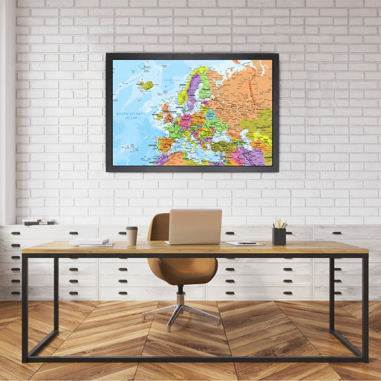 Detailed Pushpin Europe Map | 36" x 24" or 24" x 18"