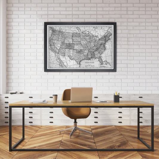 Pushpin USA map | 36" x 24" or 24" x 18" | Vintage Greyscale USA